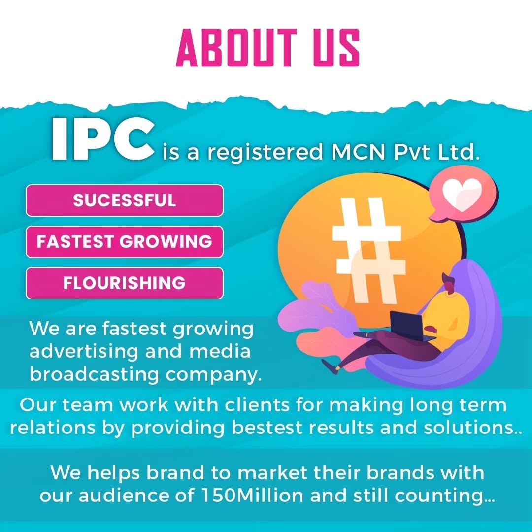 Founded in 2018, IPC Media & Production is a leading Media & Production Agency based in Delhi, with a branch in Mumbai. Driven by three visionary directors, the IPC PILLARS, we connect brands with 150M+ audiences through influencer marketing, media distribution, brand promotion, and content production, delivering creative and impactful brand stories.